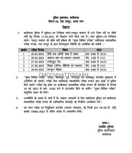 : छत्तीसगढ़ पुलिस में विभिन्न संवर्ग के 975 रिक्त पदों पर सीधी भर्ती, मुख्य लिखित परीक्षा 26, 27 और 29 मई को