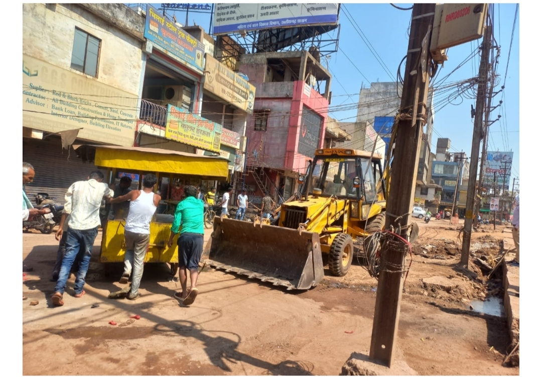 : पावर हाउस के समीप सर्विस रोड से हटाया गया अतिक्रमण, समझाइश के बाद भी नहीं मानने वाले दुकानों के होर्डिंग की गई जप्त