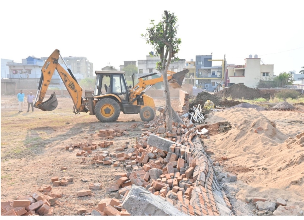 : बिना अनुमति लिए 01 एकड़ में खड़ा कर दिया था बाउंड्रीवाल, भिलाई निगम ने एक घंटे में ढहाया