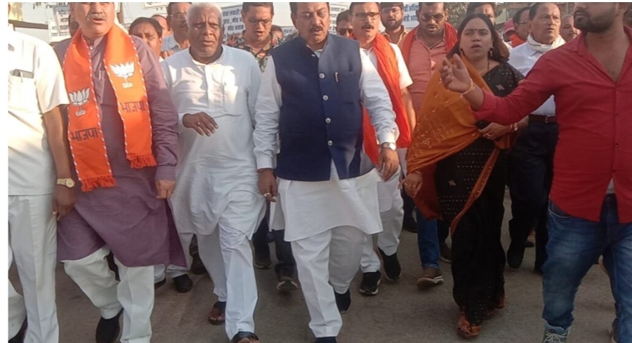ये सरकार नहीं दे सकती गरीबों को आवास | युवा मोर्चा जिलाध्यक्ष तरुण खांडेकर मंच से शेरो की तरह दहाड़ते दिखे उन्होंने कहा कि कांग्रेस शासन में ऐसी कानून व्यवस्था है कि भाजपा के कार्यकर्ताओ को रोका जा रहा है बस्तर के भीतर राजनीति हत्या हो रही है कवर्धा में नक्सलियों के द्वारा धमकी भरे पर्चा फेंके जा रहा है, भाजपा के कार्यकर्ता अपने ध्वज को बचाने के लिए,4 कार्यकर्ताओं के हत्या का विरोध कर न्याय मांगी तो उनके ऊपर एफआईआर दर्ज कर उनको जेल भेज दिया। जो सड़को पर खुलेआम तलवार लहराते रहे लेकिन उस पर कार्रवाई नहीं की गई। कल कांग्रेस के कार्यालय में बड़ी बड़ी बाते की जा रही थी आज प्रदेश में सोम्या चौरसिया अंदर क्यों है, भुपेश जी अब पर्दा हट गया है। जिला अजा मोर्चा अध्यक्ष शिवकुमार बंजारा ने कहा कि अजा वर्ग का आरक्षण भूपेश बघेल सरकार ने कम कर दिया इसे बढ़ाने की मांग करने वालों पर दमनात्मक कार्यवाही की गई। जिला पंचायत सदस्य दुर्गा साहू व रजनी सोनवानी ने कहा कि कांग्रेस शासन में अपराध इतना बढ़ गया है कि रायपुर में सरे आम लड़की का बाल खींचते हुए गंडासे से वार करते हुए सड़क पर घुमाया जाता है और पुलिस मूकदर्शक बन जाती है। भूपेश सरकार में बिहार में लालू प्रसाद चारा घोटाला किए थे आज उसको भुपेश बघेल ने पीछे छोड़ दिया है। 16 लाख प्रधानमंत्री आवास नहीं दिया गया है आवास मिलती गरीबो को तो गरीब परिवारों को रोजगार मिलता। कटघोरा से मुंगेली डोंगरगढ़ रेल लाइन को रोक कर रखें है आज तक काम नहीं किया है आत्मानंद स्कूलों को पुरानी बिल्डिंग पर पेंटिंग करके बना दिया। प्रधानमंत्री के कई योजनों के बारे में बताया को रसोई गैस दिया जा रहा है प्रधानमंत्री नरेंद्र मोदी ने कोरोना कॉल के दौरान सभी को फ्री वैक्सीन दिया गया। गरीबो को अनाज दिया, इस देश के 80 करोड़ परिवार को अनाज दिया गया। छत्तीसगढ़ में 30 किलो अनाज दिया गया और बांकी अनाज को कांग्रेस सरकार निगल गया, हमारे भाजपा के 4 कार्यकर्ताओं को नक्सलियों ने मार दिया,ये बलिदान बेकार नहीं जाएगा। कार्यक्रम का संचालन मण्डल महामंत्री लालाराम साहू ने एवं आभार प्रदेश अजा मोर्चा उपाध्यक्ष मानिकलाल सोनवानी ने किया। उपस्थित रहे दुर्ग सांसद विजय बघेल पूर्व मंत्री विधायक पुन्नूलाल मोहले पूर्व सांसद लखनलाल साहू जिला भाजपा अध्यक्ष शैलेश पाठक,प्रदेश कार्यसमिति सदस्य गिरीश शुक्ला राजेंद्र वैष्णव, जिला पंचायत सदस्य रजनी मानिक सोनवानी,प्रभा भास्कर, दुर्गा उमाशंकर साहू,जनपद उपाध्यक्ष पवन पाण्डेय, जनपद सदस्य शिवकुमार बंजारा, रामनारायण मिरी, सोम वैष्णव, तरुण खांडेकर,शिवप्रताप सिंह, सुरेश केशरवानी,दीनानाथ केशरवानी,लोकनाथ सिंह, द्वारिका जायसवाल,श्रीकांत पाण्डेय,नागेश्वर सिंह, र