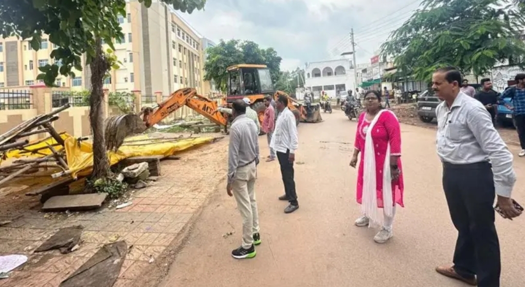 : भिलाई निगम की कार्रवाई : नेहरू नगर चौक से सूर्या मॉल तक सड़क किनारे हटाए कब्जे