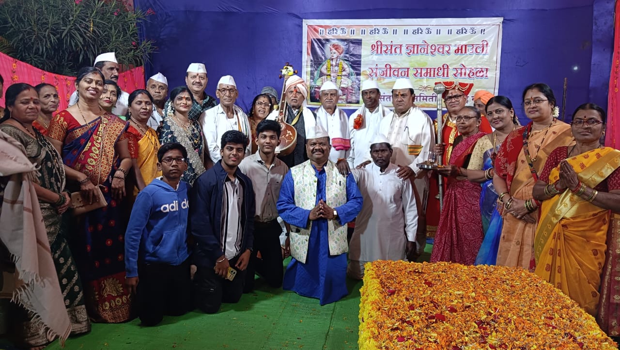 Oplus_131072[/caption]शोभायात्रा सेक्टर-1 क्षेत्र का भ्रमण करते हुए आयोजन स्थल पहुंची जहां कार्यक्रम का विधिवत् शुभारंभ हुआ। विजय माहूरकर के सेक्टर-1 निवास पर प्रतिवर्ष की भाति श्रीसंत ज्ञानेश्वर महाराज पुण्यतिथी महोत्सव का आयोजन श्रीगुरुवर सहजानंद महाराज सेवा समिति मंडली द्वारा किया गया। प्रथम अभिषेक माल्यार्पण किया गया। पंचपदी भजन हरिपाठ शाम को पंचपदी भजन हरिपाठ का