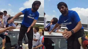तिरंगा पर बजरंग ने रखा जूता विनेश फोगाट के स्वागत के दौरान बजरंग तिरंगे के पोस्टर पर खड़े हो गए। वह जूता पहनकर कार के बोनट पर खड़े थे। वहां से बजरंग भीड़ और मीडिया को संभाल रहे थे। बोनट पर ही तिरंगे का पोस्टर चिपका हुआ था। इसपर बजरंग ने अपना पैर रख दिया। इस घटना का वीडियो सोशल मीडिया पर वायरल हो गया है। सोशल मीडिया पर लोग बजरंग पर तिरंगे का अपमान करने का आरोप लगा रहे हैं https://twitter.com/i/status/1824707741132136537