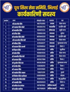 यूथ सिख सेवा समिति के अध्यक्ष सरदार इंद्रजीत सिंग छोटू ने घोषित की कार्यकारिणी,