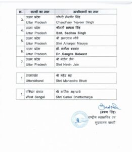 वही कर्नाटक से 1, उत्तर प्रदेश से 7, उत्तराखंड और पश्चिम बंगाल 1-1 से उम्मीदवारों को उतारा है। बता दें कि राज्यसभा से 8 मंत्रियों समेत 68 सांसद रिटायर हो रहे हैं।