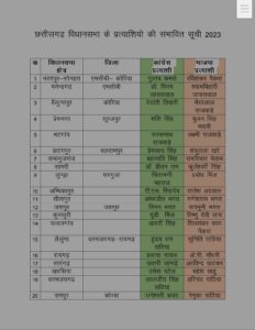 : छत्तीसगढ़ विधानसभा के प्रत्याशियों की संभावित सूची 2023 बीजेपी एवं कांग्रेस
