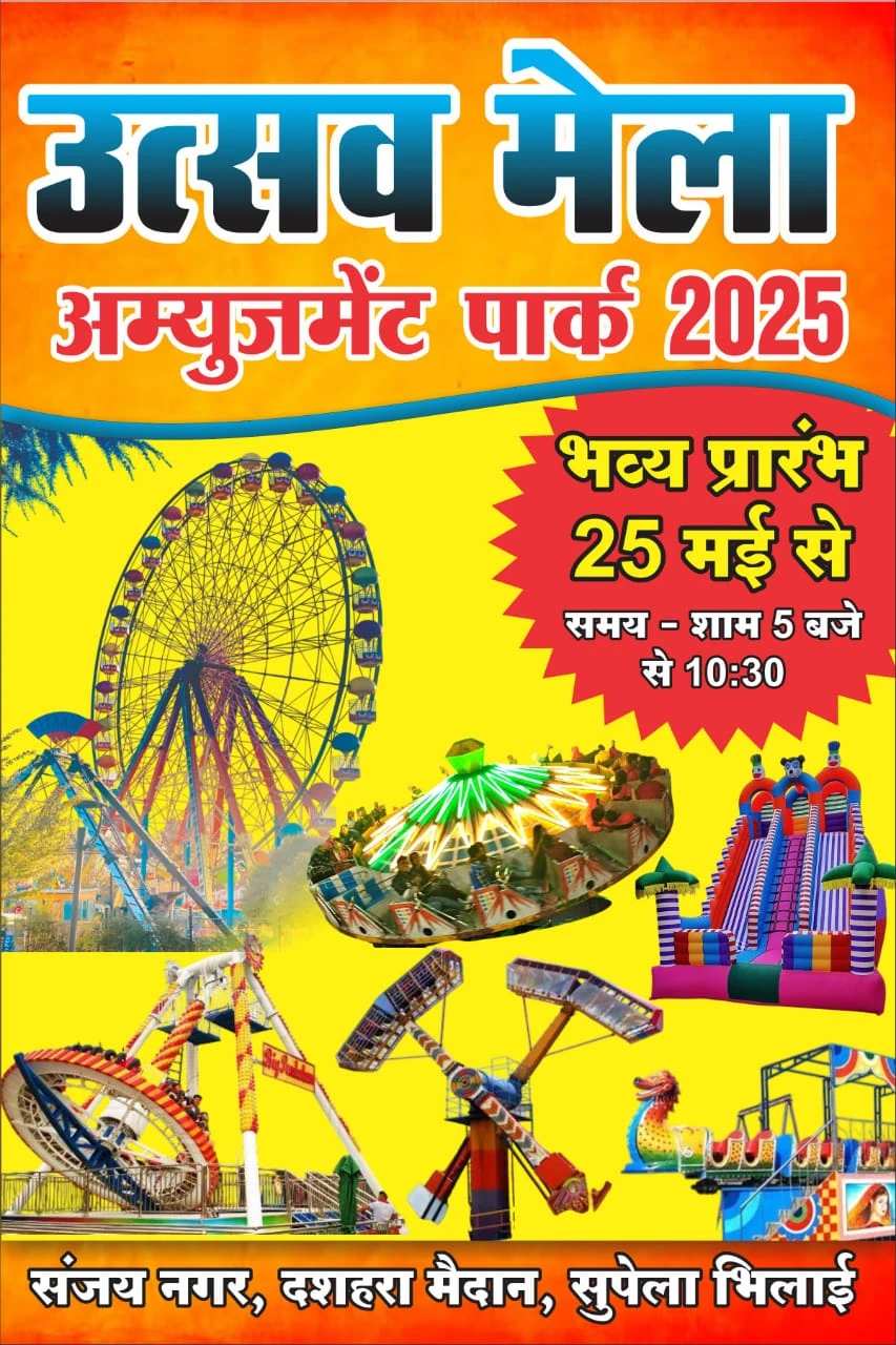 भिलाई में शुरु हुआ एम्यूजमेंट पार्क : उत्सव मेला एम्यूजमेंट लगाया गया है। 25 मई को इसका शुभारंभ कर दिया गया है