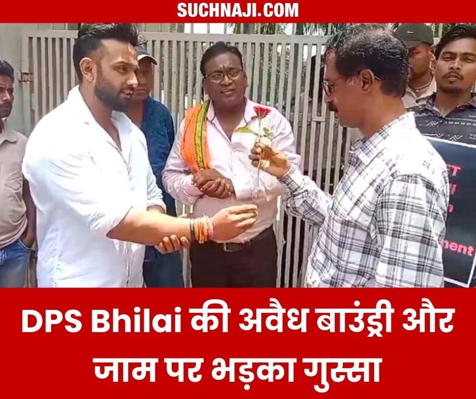 : DPS Bhilai की अवैध बाउंड्री और जाम पर भड़का गुस्सा, गुलाब देकर 10 दिन की दी चेतावनी