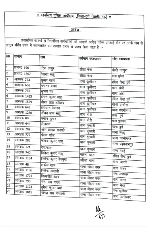 पुलिस अधीक्षक विजय अग्रवाल ने रविवार को बड़े पैमाने पर पुलिसकर्मियों क : दुर्ग पुलिस अधीक्षक विजय अग्रवाल ने रविवार को बड़े पैमाने पर पुलिसकर्मियों का तबादला किया